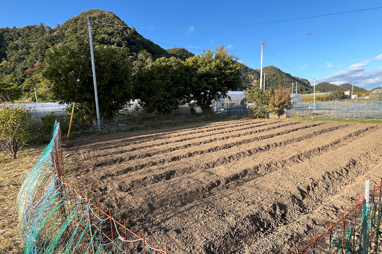 甚三郎は江戸時代よりこの地で半農半漁の暮らしを営んできました。代表者の祖母 "岡田はつ"(1912-2008)の代まで農業を行ってきましたが、没後は担い手もなく、農地のごく一部分で細々と家庭菜園程度に農作物を作っていました。