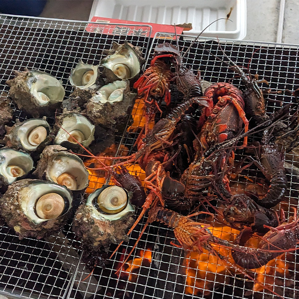 千倉町の海の幸、畑で収穫した季節の野菜を海辺で豪快にBBQ!農作業の後は、その美味しさもまた格別です。